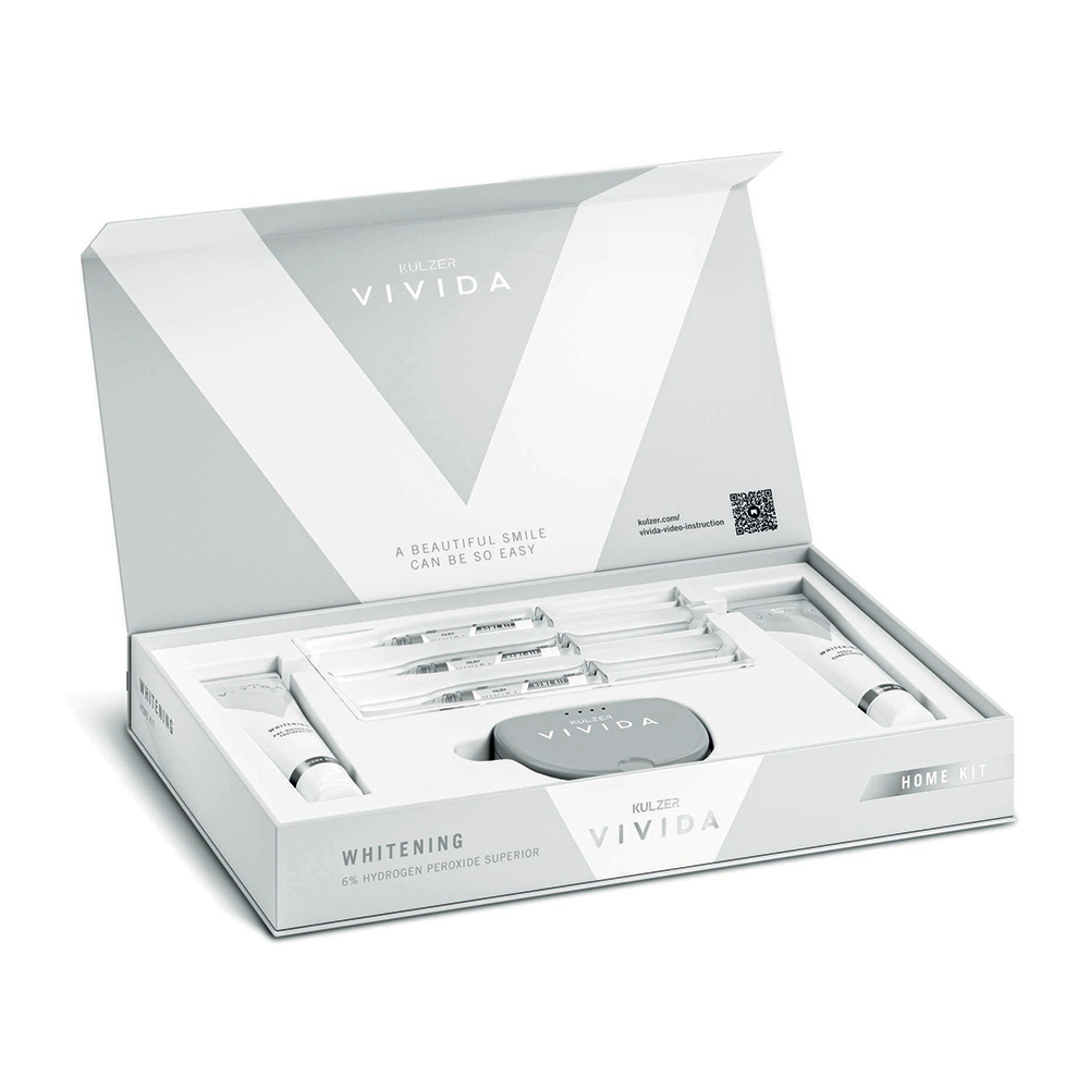 <b>Sbiancamento domiciliare a base di perossido d'idrogeno al 6% - Trattamento per 1 paziente</b> L'esclusiva formula HPS del gel, riduce l'ipersensibilità, ha una viscosità uniforme e richiede solo 15-30 minuti di applicazione e non prevede la refrigerazione. <b>Confezione KIT che comprende:</b> • n. 1 Pre-Whitening Toothpaste 50 g dentifricio pretrattamento, • n. 3 siringhe da 3 ml di gel al 6%, • n. 1 Tooth Conditioner da 50 g balsamo post-trattamento • n. 1 portamascherina.