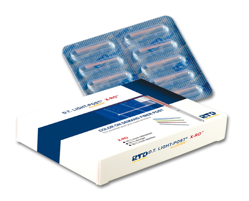 DT–LIGHT–POST ILLUSION n.2 Giallo 10pz diam.1,00–1,80mm V861981000102 RTD Dentsply Perno in fibra di quarzo traslucente a doppia conicità con radiopacità (+50%) e resistenza (+20%) migliorate. Perno termo–mimetico che inserito in bocca diventa completamente traslucente ma in caso di necessità riacquista il suo colore originario con un getto d'aria fredda. I perni RTD si usano in abbinamento a Core X Flow, il composito duale per la cementazione dei perni in fibra e la ricostruzione dei monconi. Disponibili in 4 misure (0.5 , 1, 2 e 3), identificate dall'anello colorato. <b>Codifica colore per una semplice identificazione della misura:</b> - nero mis.0,5: ø apicale 0,8mm - ø testa perno 1,25 - doppia conicità 02/04 - rosso mis.1: ø apicale 0,9mm - ø testa perno 1,50 - doppia conicità 02/06 - giallo mis.2: ø apicale 1,0mm - ø testa perno 1,80 - doppia conicità 02/08 - blu mis.3: ø apicale 1,20mm - ø testa perno 2,20 - doppia conicità 02/10