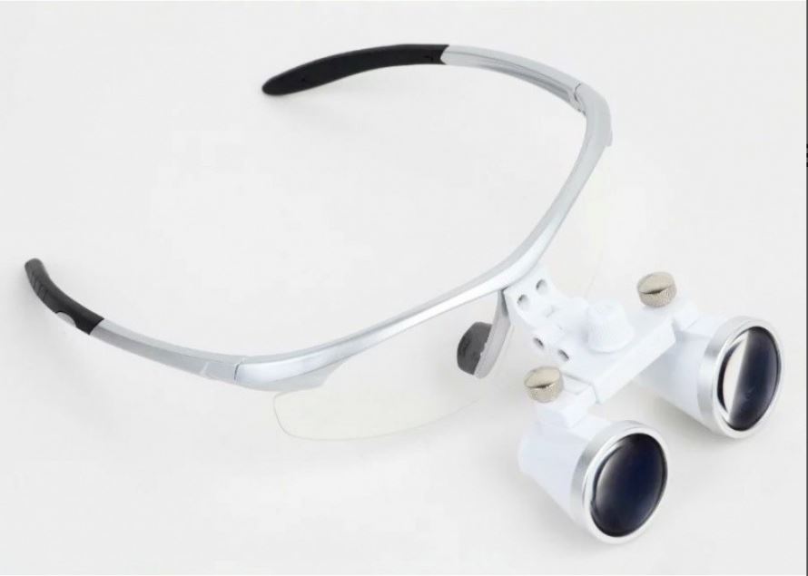 Occhiali ingrandenti a LED – Fissaggio e rimozione rapida del LED – Illuminazione priva di ombre regolabile 15.000/30.000 Lux, effetto luce naturale 5500 Kelvin – Distanza di lavoro da 32 a 42 cm per una migliore messa a fuoco – Regolazione del posizionamento del binocolo 30°-45° rispetto all’asse orizzontale , ciņ permette una migliore visione del sito mantenendo una corretta postura eretta – Regolazione inter pupillare – Nastro di tenuta regolabile, immobilizza il sistema ingrandente alla testa riducendo il carico sul naso. Utilizzabile come cordoncino reggi occhiali quando non indossati.